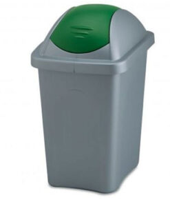 Κάδος πλαστικός 60lit με πράσινο αιωρούμενο καπάκι και γκρι κορμό 36x36x68hcm