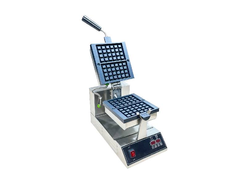 Επαγγελματική Βαφλιέρα με περιστρεφόμενες πλάκες για βάφλες τύπου Βρυξελλών με τα χαρακτηριστικά τετραγωνάκια. Ψήνει ταυτόχρονα 2 βάφλες ορθογώνιες με τετραγωνάκια 4×6 και διάσταση 163x100x25mm.