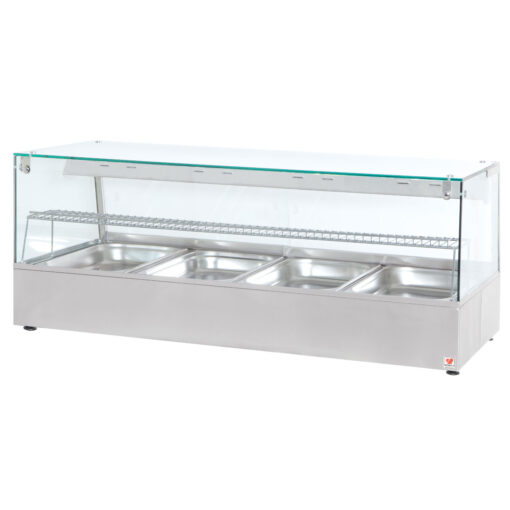 Είναι εξοπλισμένη με 4 λεκάνες G/N 1/1 – 65mm & Θερμοστάτη 90C