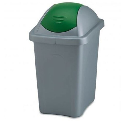 Κάδος πλαστικός 60lit με πράσινο αιωρούμενο καπάκι και γκρι κορμό 36x36x68hcm