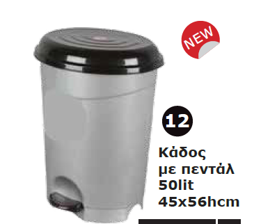 • ΚΑΔΟΣ ΠΛΑΣΤΙΚΟΣ ΜΕ ΠΕΝΤΑΛ ΓΚΡΙ ΜΕ ΜΑΥΡΟ ΚΑΠΑΚΙ 50lt 45x56hcm