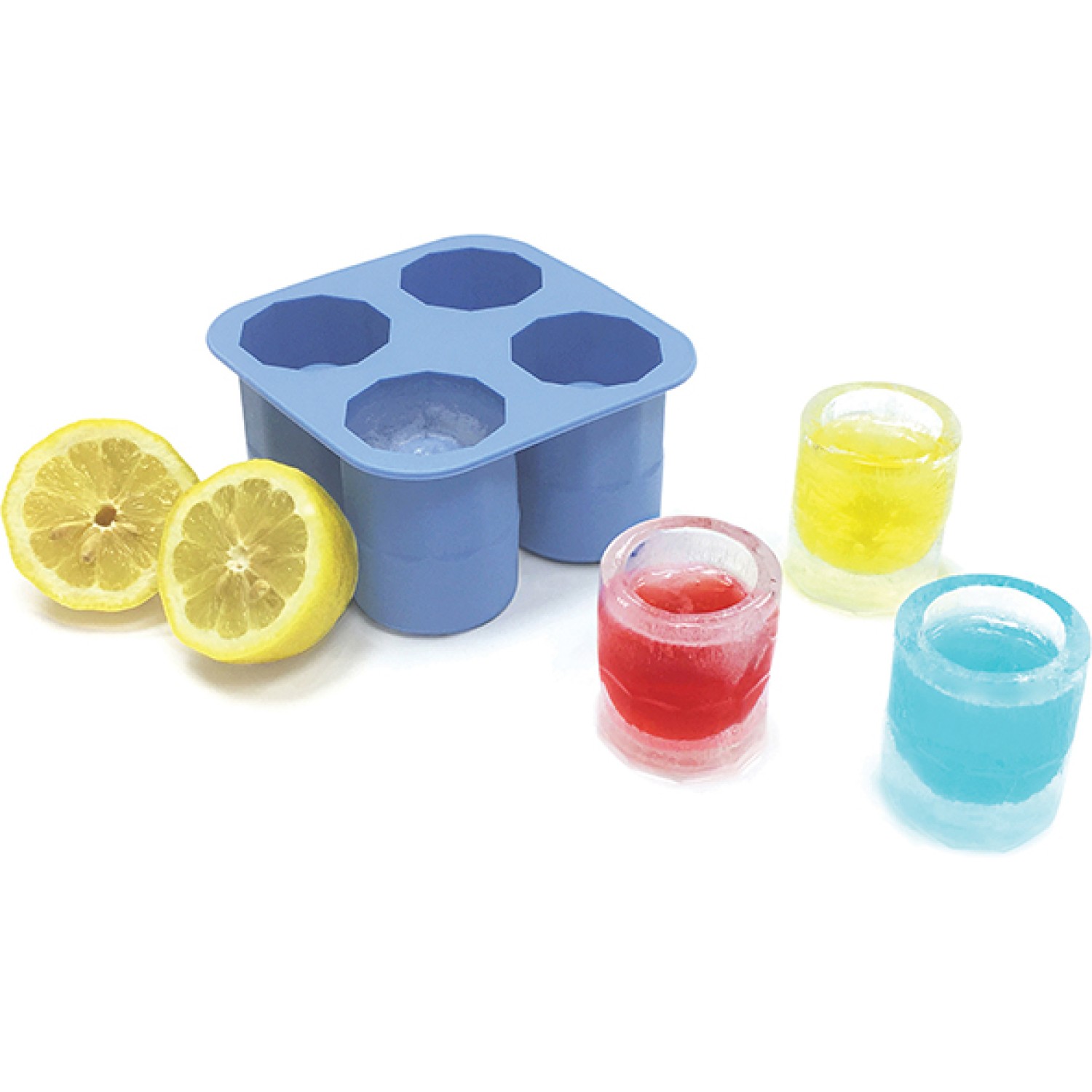Καλούπι για δημιουργία σφηνοπότηρου από πάγο, μια έξυπνη και πρωτότυπη λύση για απαιτητικούς barmen. Το καλούπι αποτελείται από 4 θέσεις που σχηματίζουν ποτήρια σφηνάκια από πάγο. Γεμίστε τη θήκη με νερό, τοποθετήστε το έξτρα έμβολο για τη δημιουργία του ποτηριού, παγώστε και σερβίρετε το σφηνάκι σε ένα πρωτότυπο ποτήρι από πάγο. Το ποτήρι που σχηματίζεται έχει στρογγυλό σχήμα. Το καλούπι είναι κατασκευασμένο από ανθεκτική σιλικόνη κατάλληλη για τρόφιμα, σε μπλε χρώμα.