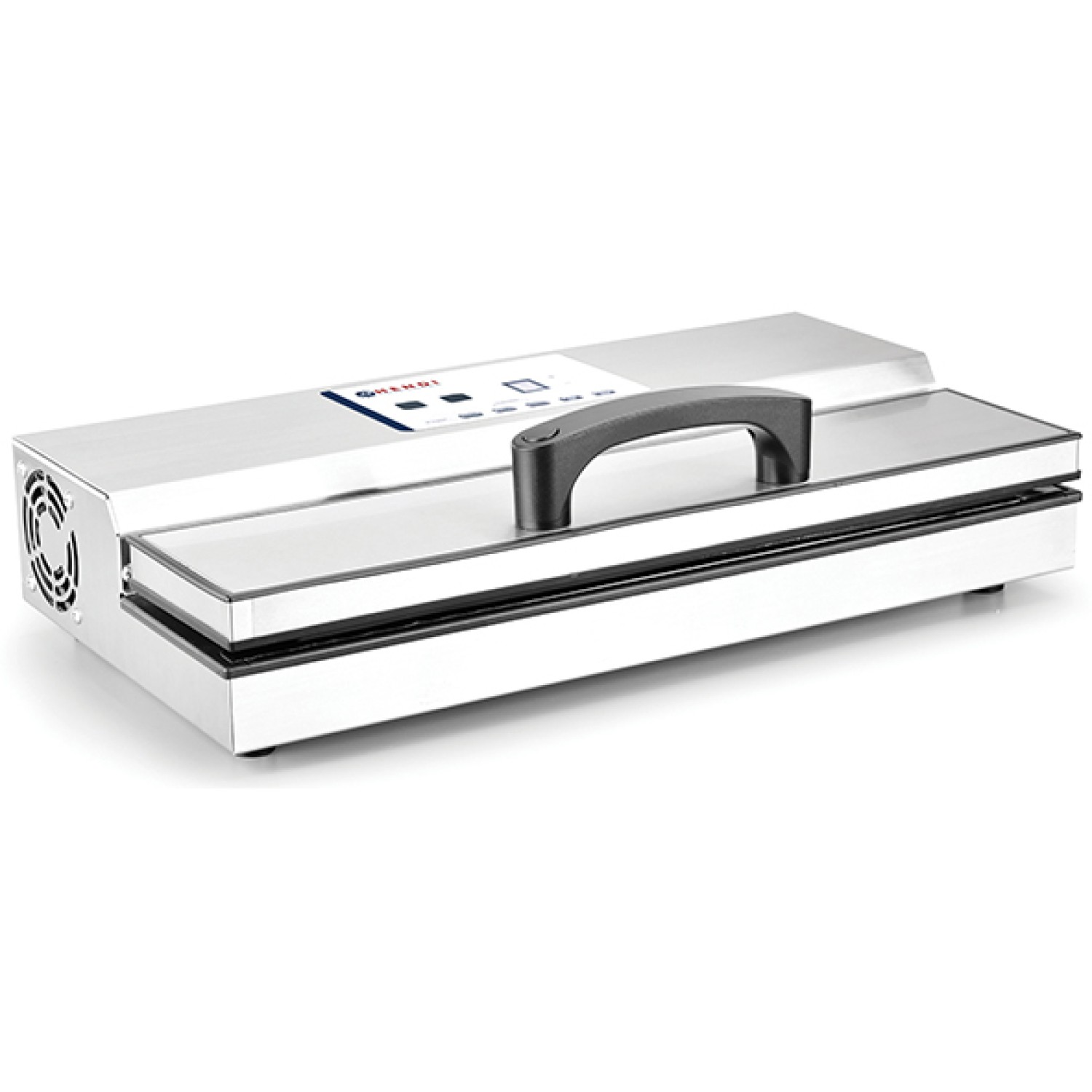 Μηχανή συσκευασίας σε κενό αέρος Kitchen Line. Μπάρα συγκόλλησης 420 mm, φάρδος μπάρας συγκόλλησης: Κατάλληλη για σακούλες σε ρολό σε συνδυασμό με το εξάρτημα για ρολά 970638. Ψηφιακή ένδειξη στάθμης κενού και κύκλου εκκένωσης. Το κενό παράγεται με συνεχή ή παλμική λειτουργία. Πρόσθετα κουμπιά στη λαβή για γρήγορη εκκίνηση του κενού και της εκκένωσης. Αυτόματη διακοπή λειτουργίας μετά από 10 λεπτά άνευ λειτουργίας – εξοικονόμηση ενέργειας. Η υψηλή ισχύς της μπάρα συγκόλλησης μειώνει τον χρόνο συγκόλλησης στα 2-3sec. Διπλή αντλία υψηλής απόδοσης: 16l/min. Σώμα από ανοξείδωτο ατσάλι. Στιβαρή λαβή. Μόνο για σακούλες σαγρέ, με πλάτος μέχρι 406mm. Βάρος: 6,9 kg. Ισχύς ρεύματος: 230V-650W