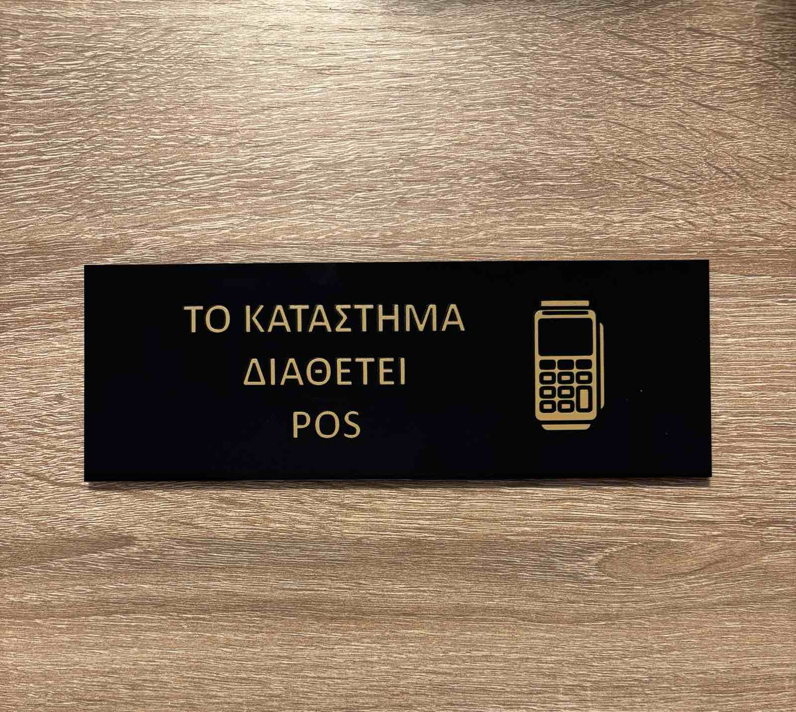 ΠΙΝΑΚΙΔΑ ”ΤΟ ΚΑΤΑΣΤΗΜΑ ΔΙΑΘΕΤΕΙ POS” PLEXIGLASS ΜΑΥΡΗ ΜΕ ΧΡΥΣΑ ΓΡΑΜΜΑΤΑ 20x7cm