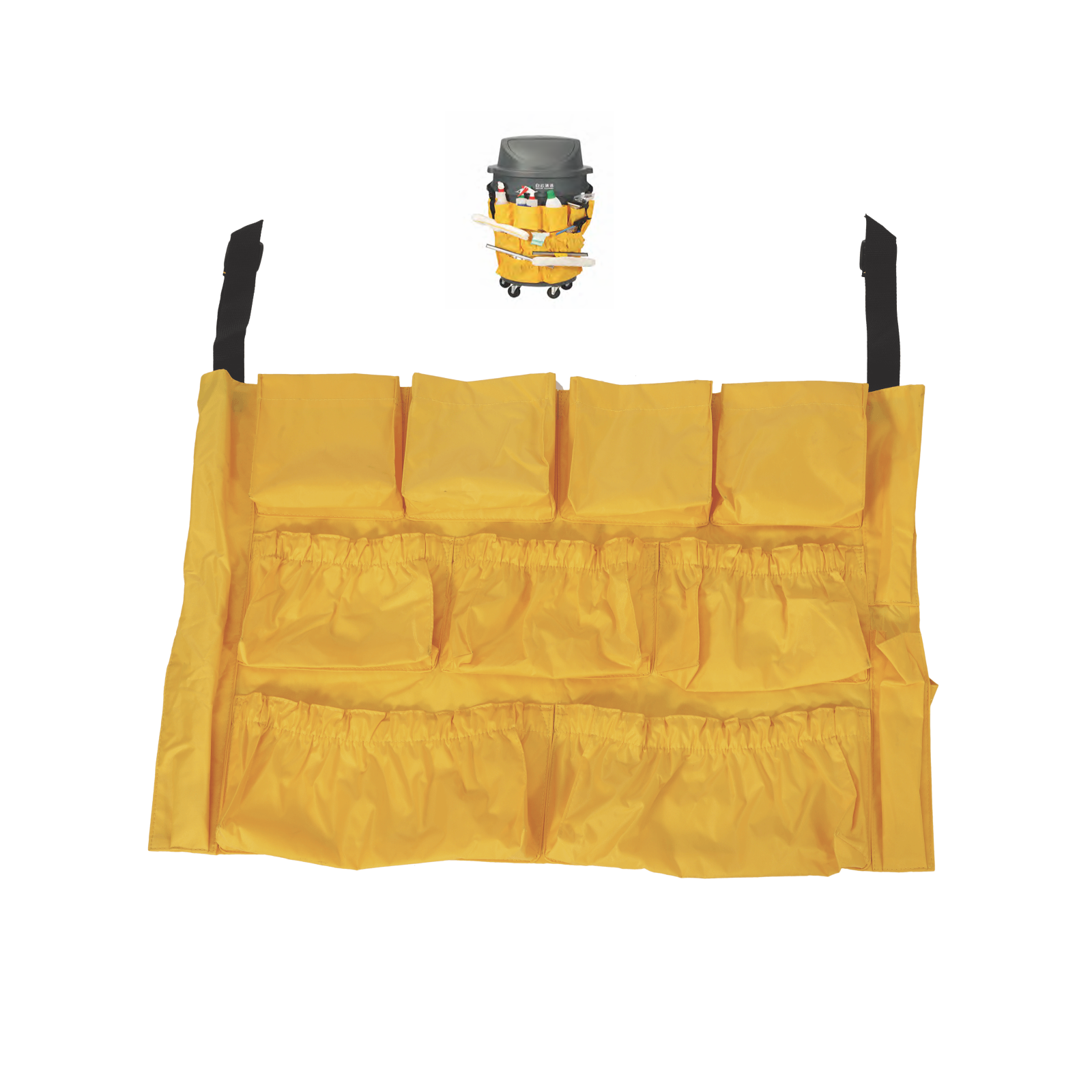 Σάκος με πολλές θήκες. Ιδανικός για τοποθέτηση απορρυπαντικών – εργαλείων καθαρισμου και ότι χρειάζεται για καθαρισμό δωματίων – μεγάλων χώρων κλπ.