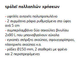 ΤΡΟΛΕΙ ΠΟΛΛΑΠΛΩΝ ΧΡΗΣΕΩΝ ΕΠΑΓΓ/ΚΟ 2x90LT 1500x540x1200mm