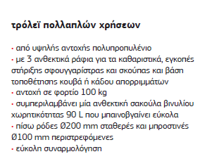 ΤΡΟΛΕΙ ΠΟΛΛΑΠΛΩΝ ΧΡΗΣΕΩΝ ΕΠΑΓΓ/ΚΟ 90LT 1130x500x980mm