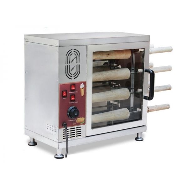 ● Ηλεκτρικός φούρνος για Chimney cake «καμινάδα» ● 8 θέσεις για σούβλες ● 2 πόρτες-1 πόρτα σε κάθε όψη ● περιλαμβάνονται 8 ξύλινες σούβλες και 8 κωνικές ξύλινες σούβλες 230V/3,2kW, 295(Π)x550(B)x540(Y)mm, 35kg