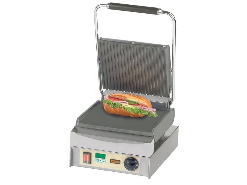 Χάρη στον ειδικό μηχανισμό ελατηρίων που διαθέτει, η πάνω πλάκα σταθεροποιείται στο επιθυμητό ύψος, ώστε να μην πιέζει με το βάρος της τα ψητά, εξασφαλίζοντας ένα άψογο αποτέλεσμα, τόσο στη γεύση, όσο και στην εμφάνιση των ψητών.